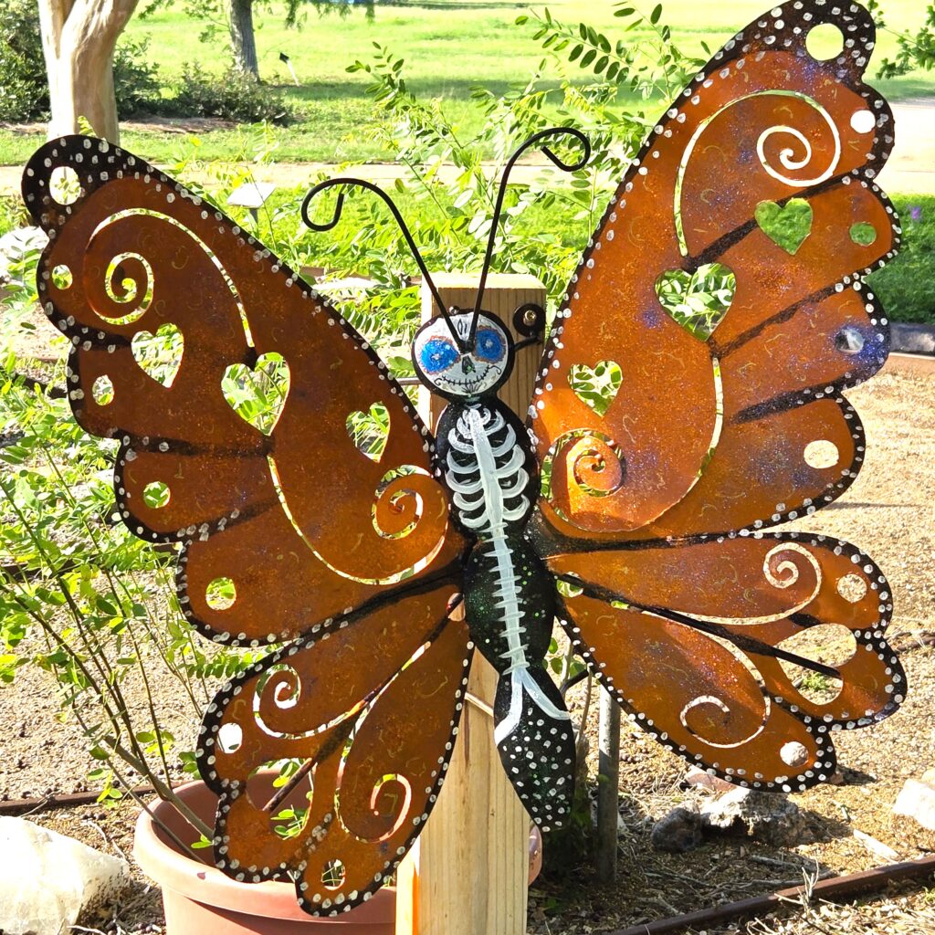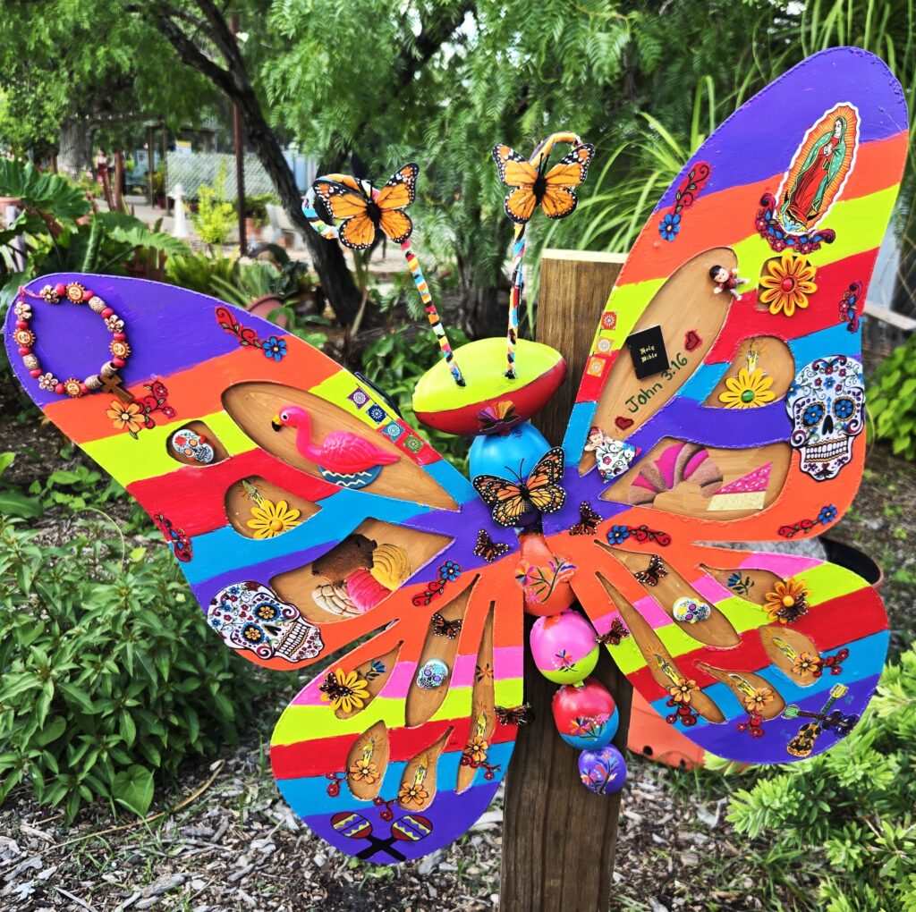 Corpus Christi Arts & Cultural Commission grant-funded “MARIPOSA PALOOZA,” featuring 70 large, colorful artist-designed butterflies, ties butterfly education—life cycle, migration, pollinator plants, and saving Monarch populations—to Dia de los Muertos, a sacred, spiritual and Mexican cultural influence!